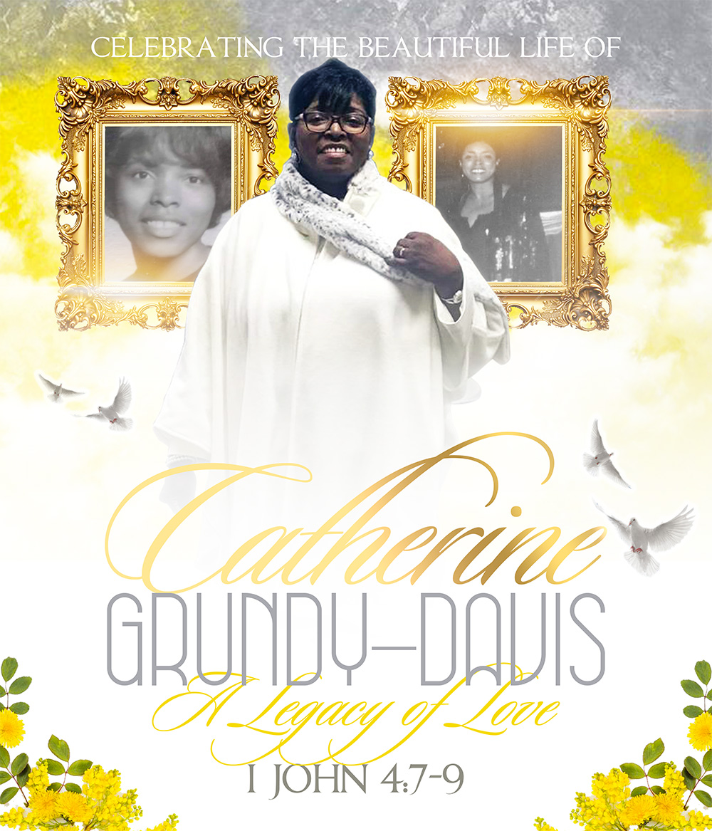 Our dearest Catherine Grundy-Davis was the absolute backbone of her family, both immediate and extended. She was a beloved daughter, Mother, Mee-maw, Aunt Cookie, sister, friend and a dynamic leader in the communities she served (South Bend, Indiana and Dayton, Ohio.) In a sudden and unforeseen turn of events, Thursday, December 14th, God called our dear Cathy home.
